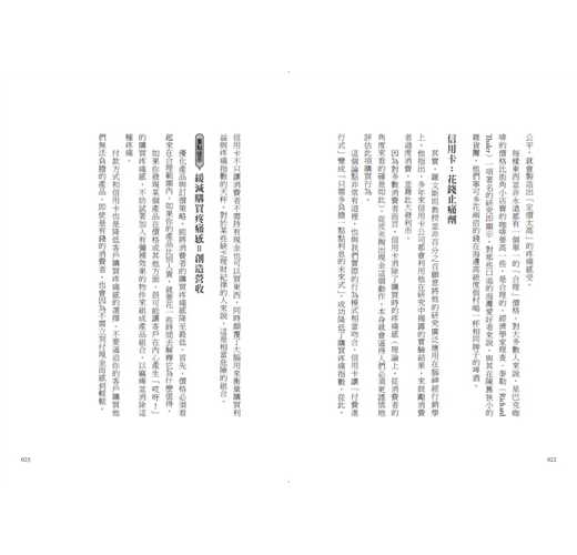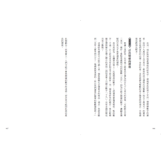 「免費」比所有理性的經濟分析都還更有吸引力。如果你想賣得更多,請好好運用這個力量。我經常看到百貨公司有這樣的優惠:「長褲第二件只要一分錢!」不過,「哇! 長褲只要一分錢!」聽來更棒,但我想「免費」一定比「一分錢」好更多。想衝業績嗎? 試試提供一些免費的東西吧。若想讓更多人使用新產品,贈送免費的試用包也很有用。
