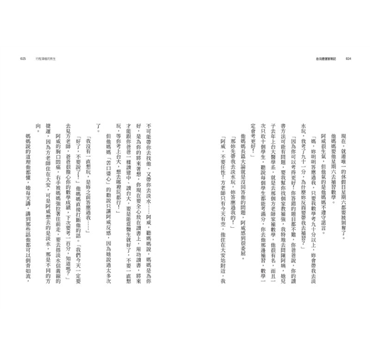 「你跟你爸爸會合以後,記得立刻拍一張合照,傳給我,知道嗎?」他媽媽停頓一下,又補充:「只要你們兩個就好,其他人就不必了。」