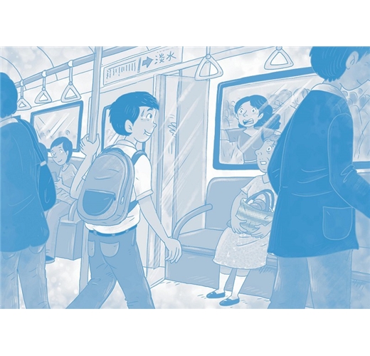 車門警示音響起,接著緩緩關上,列車啟動了,駛離月台,他逐漸看不見他媽媽的身影。