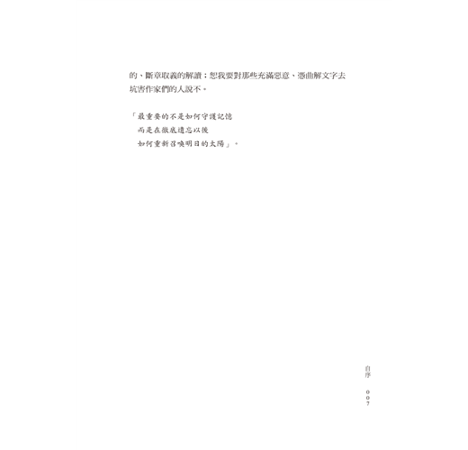 「最重要的不是如何守護記憶,而是在徹底遺忘以後,如何重新召喚明日的太陽──」