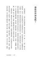 但也無可諱言的,正信的佛教在大乘教的流行地區,尤其是在中國,一向是被山林的高僧以及少數的士君子所專有,至於民間的正信,始終未能普及,一般的民眾,始終都在儒、釋、道三教混雜信仰的觀念中生活,比如對於鬼神的崇拜以及人死即鬼的信念,都不是佛教的產物。