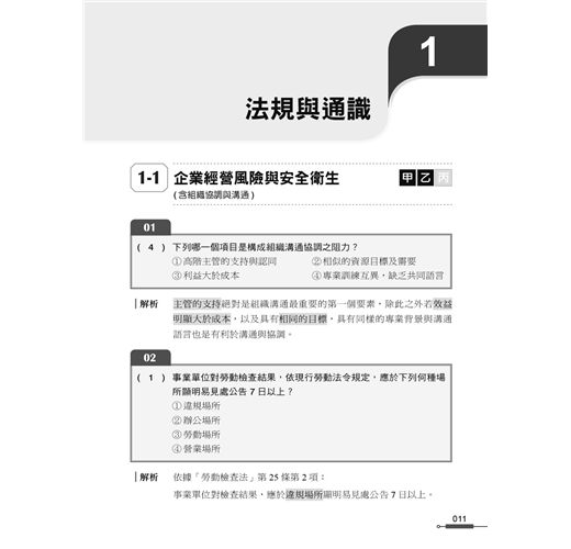 1.1 企業經營風險與安全衛生(含組織協調與溝通)