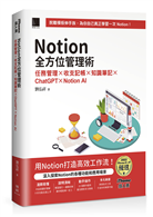 本書首先將 Notion 的各種基礎元素拆解說明,為你打下操作基本功;隨後邁向進階應用,完整介紹各種最新的高級功能與其應用,包含最新的 Notion AI、Formula 2.0、Button、Automation 等;最後結合 Notion、Make、Zapier、Siri、ChatGPT 等工具,依照財務管理、團隊協作、個人成長等不同場景,實作出記帳系統、任務看板、文案助手、智能日記、數位花園等。