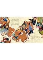 「哈,不只呢!」郵差大喊著。他擠出人群,把堆滿包裹 的雪橇一輛輛拉進來。