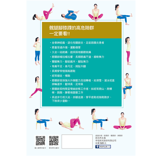 著作:《不運動,當然會生病》、《極簡養生》、《筋骨關節疼痛防治全百科》等暢銷書