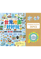 有哪些可愛的動物?哪些好吃的美食?哪些具有特色的景點?★本產品是專為學齡前幼兒設計的台灣地圖+認知百科二合一的趣味探索拼圖產品