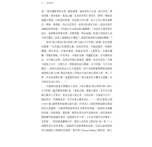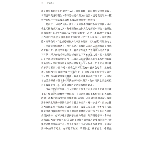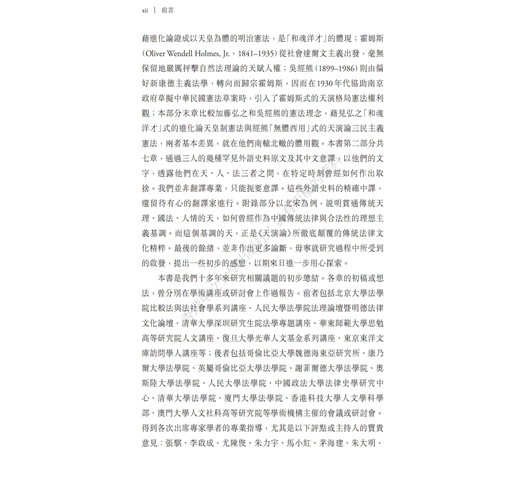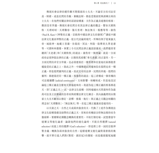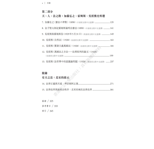 這是一部思想梳理與史料再現相得益彰的著作。經由兩位作者基於比較法律文化史視野的巧妙連綴和精心鉤沉,本是分散脈絡的加藤弘之、霍姆斯和吳經熊三人的個別構思,得以匯聚為19世紀末、20世紀初在天、法、人的關係主題上遙相呼應的智識努力。