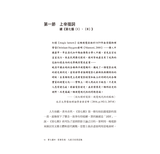 「林慎博士的《第七藝III》以跨學科的視野,結合哲學與電影,由香港到台灣,從九把刀到周星馳,貫穿...