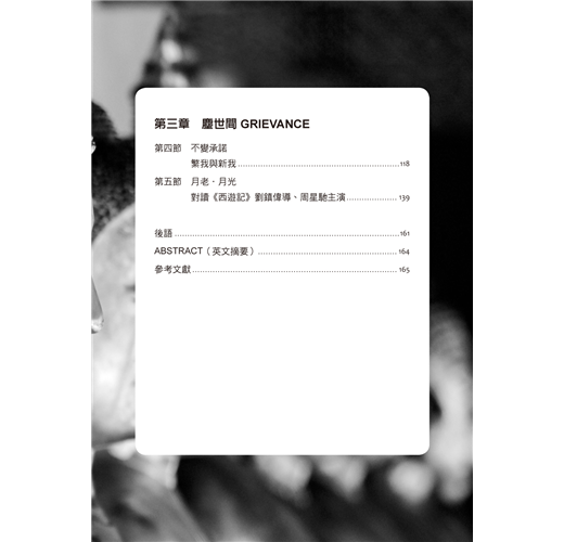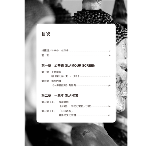 在這一冊,我會承接上一冊的線索,調查台灣光影背後的文化主體,推論出「幻幕鏡」這原創概念。電影在華語中有電光影戲的語源意思,而西方亦有跟《聖經》相關的詞屏一說。我將會引伸這個概念,進行在地的知識建構,以此來看出虛構與屬實之間的分別。在討論了屬實性之後,佛教用語「彼岸」──一個象徵死亡與希望的圖騰──被抽取出來重點討論。此外亦會論及一些明顯虛構但屬實的後現代作品。此冊的主要文本為《大佛普拉斯》、《月老》和劉鎮偉、周星馳版本的《西遊記第壹佰零壹回之月光寶盒》(編按:台灣片名為《齊天大聖東遊記》)和《西遊記大結局之仙履奇緣》(編按:台灣片名為《齊天大聖西遊記》)(下合稱《西遊》)。