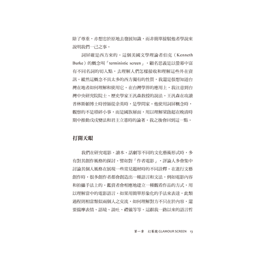 今冊以台灣和香港為雙主角。林慎以紀錄片與電影中間的缺口推論出「幻幕」的原創思想概念,去探索光影世界的虛實縫隙。以此為濾鏡觀之,一地電影的意義有待在地詮釋,而華語電影中的「彼岸」喻體亦變得實在。從周星馳的月光寶盒到九把刀的月老,「一萬年」之嘆透射出同月異彩。