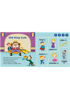 藉由反覆播放英文童謠,讓孩子感受歌曲的節奏與音調,自然而然建立英文音韻和語調感知。而繽紛童趣的插畫,則可以吸引孩子閱讀圖像,進行「指物命名」的練習。