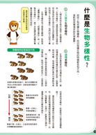 1.以活潑生動的情境式漫畫,深入淺出講解生物多樣性的重要,以及如何致力於維護生態系平衡。