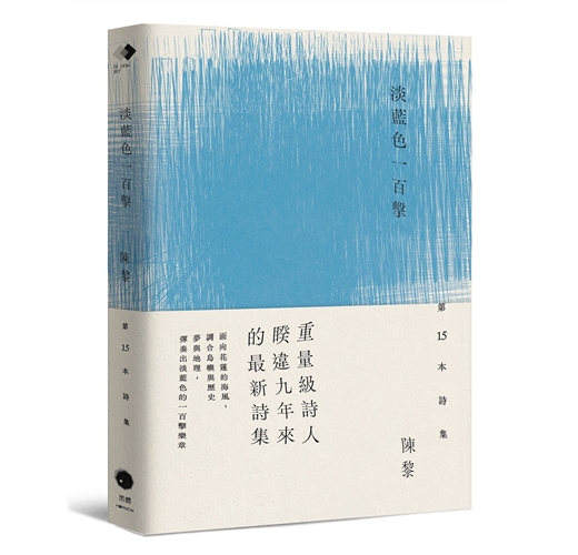《淡藍色一百擊》是陳黎睽違九年來的最新詩集,收錄64首長短詩新作,既延續了他一貫新鮮大膽的風格,諸如雙關語和諧音字的妙用,圖象詩和排列詩的實驗,古典詩歌的鑲嵌和典故的改寫,也開創更多新的主題。從個人的病痛感懷到台灣的百年身世,從詩歌的家庭之旅到家族的詩意之旅,從政治的諧擬諷刺到情慾的想入非非,陳黎持續突破中文現代詩創作的藩籬,翻轉出無限的可能性。