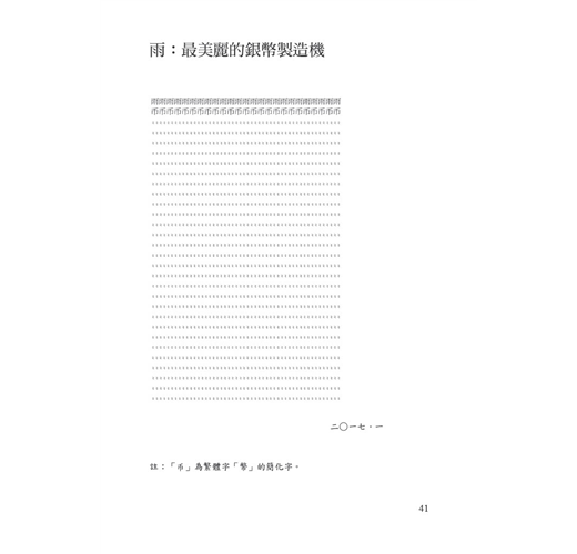 我一直到2023年3月,才敢重新面對詩,提筆寫了〈淡藍色一百擊〉後的第一、第二首詩作──〈病中作〉和〈風林火山〉,而後在五月、六月、七月、八月間陸續寫成其他十首詩,在九月寫成〈花蓮狼〉、〈花蓮藍〉、〈投幣夾〉、〈戒嚴時代匯率夾〉、〈對南向政策的小聲援調查〉、〈山水〉與〈「淡藍色」變奏33首〉。這是上天為我寫的「喜/鬧/悲(傷)劇」劇本嗎,以〈淡藍色一百擊〉此組「三行詩」與其後的十九首廣義的「病中作」,為《淡藍色一百擊》這本詩集收尾(或壓軸?)。