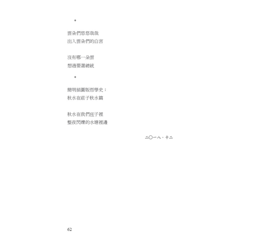 我要感謝四十多年來的老友、文友、樂友──懸壺三重的醫師作家莊裕安,半年多來週週包容我的電話訴苦、求援以及近乎騷擾的不安詢問,助我仍有餘勇讓此本跨越八年的拙集得以殺青(啊,多希望順便將心中的「青蛇」──憂鬱之蛇──也殺掉!)。也要感謝日夜照料我,忍受我的不耐,身上苦痛數倍於我,卻仍要在我每夜服藥就寢後,將諸多家事做完始能休息的我的妻子。我只能在膽怯的詩行中向她、向其堅毅致愛、致敬。我也要感謝在各種時段,突然接獲我電話,聽我反覆嘮叨、傾訴,以「話療」助我小命至今仍在的各方親友、學生。