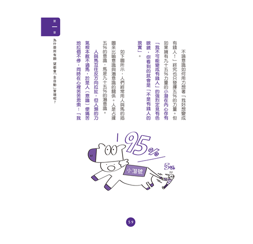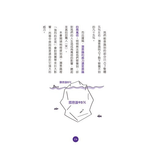 我們能意識到的部分只占了整體五%左右,潛意識則占了剩下察覺不到的九十五%。