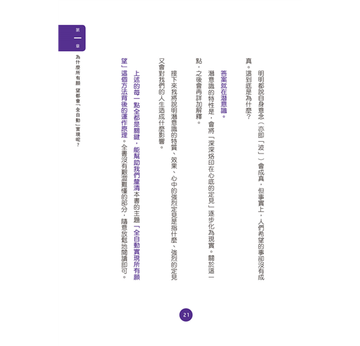 上述的每一點全都是關鍵,能幫助我們釐清本書的主題「全自動實現所有願望」這個方法背後的運作原理。全書沒有艱澀難懂的部分,隨意放鬆地閱讀即可。