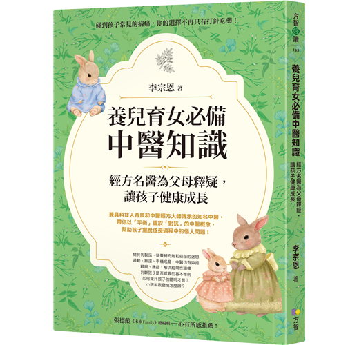 「這本《養兒育女必備中醫知識》集結家長平常會遇到的所有孩子健康相關問題,從感冒、過敏、食欲、長高、過動、不專心等等,甚至到青春期的叛逆,中醫都有解方。對家有青少年的爸媽來說,簡直就是一大福音!健康是全方位的,包括身體、心靈、正向的關係與情感,期待透過這本書,為家庭帶來更多的幸福與平衡。」