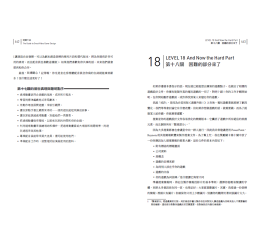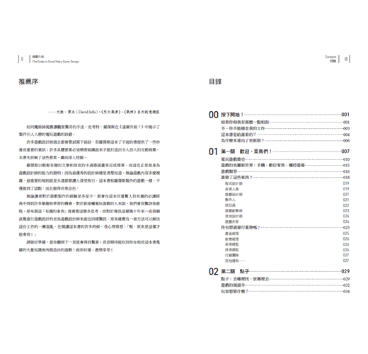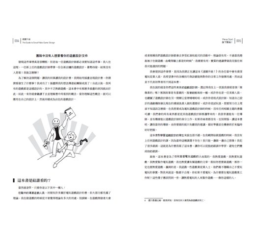 名人推薦:羅傑斯這本了不起的書提供了一些珍貴而重要的資訊:許多具體要素必須精密組織起來才能打造出令人投入的互動娛樂,本書先拆解了這些要素,繼而深入挖掘。對於新接觸電玩遊戲的人來說,他們會很驚訝地發現,原來創造「有趣的東西」竟需要這麼多思考。而對於像我這樣幾十年來一直倚賴直覺進行遊戲設計的老鳥遊戲設計師來說也同樣驚詫,原來確實有一套方法可以解決這份工作的一團混亂!──大衛.賈夫(David Jaffe),《烈火戰車》、《戰神》系列創意總監