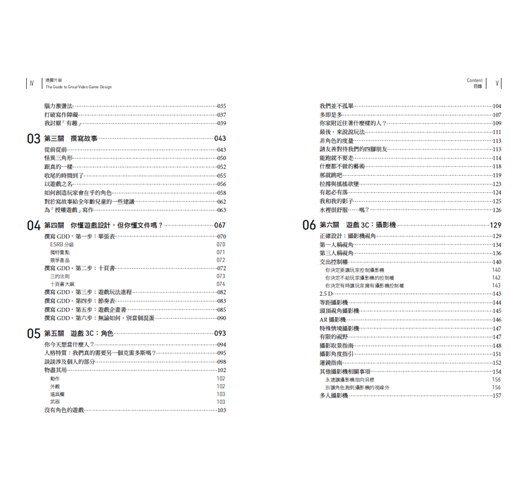 從遊戲的3C(角色塑造、鏡頭運作、操控方式)、關卡設計、HUD設計與介面,到充滿張力的衝突與戰鬥,本書還收錄了更多心法,包括如何用「玩家手指運動指南」設計符合人體工學的控制方法、如何用「墨西哥披薩」技法讓關卡主題變得獨一無二、如何用「攻擊矩陣」追蹤作戰招式與反應、如何規劃「有良心」的營利模式好讓玩家付費支持你營運下去,以及如何選對發行商才能讓遊戲擁有最多曝光……
