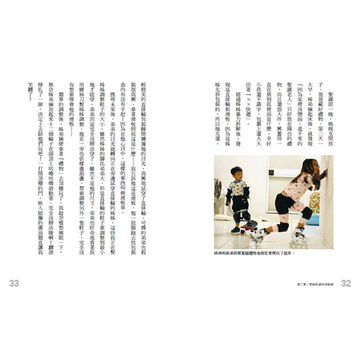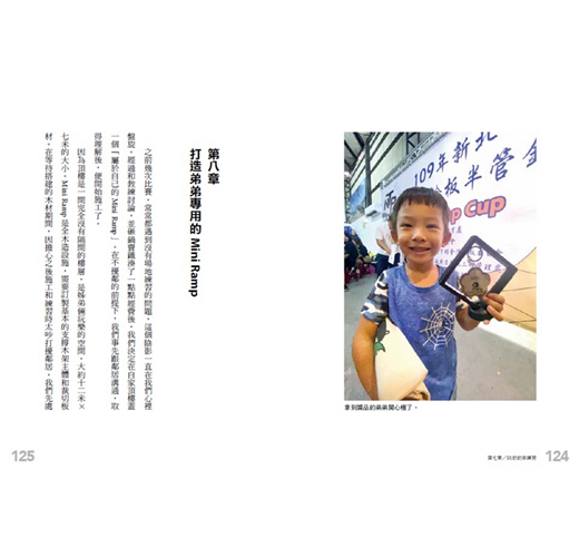 楊小弟是我在板場見過最有禮貌的小孩,每次見到他都覺得充滿活力,非常可愛!他不斷練習,即使失敗了,總是擦擦眼淚,繼續練習,看了心疼又佩服。這幾年來,發現他成長了許多,因為滑板,在板場散發出自信的光芒,魅力十足!以前就有觀察到,爸爸總是陪伴著楊小弟,不是以責備的方式調教,而是像教練般的方式,提醒弟弟為什麼會失敗、要如何調整下次的嘗試、給予鼓勵,這樣溫馨的畫面非常罕見。現在家長都忙碌於打拚生活,真正可以這樣陪伴孩子成長,一同參與,真的很棒,非常推薦這本書給大家。