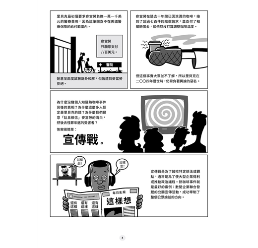 《圖解真相戰》充滿巧妙插圖的實際宣傳例子,將幫助你用清晰的眼光看待這個世界。本書像是讓你看穿宣傳世界的紅藥丸,服下,你的世界/視界就會不一樣。