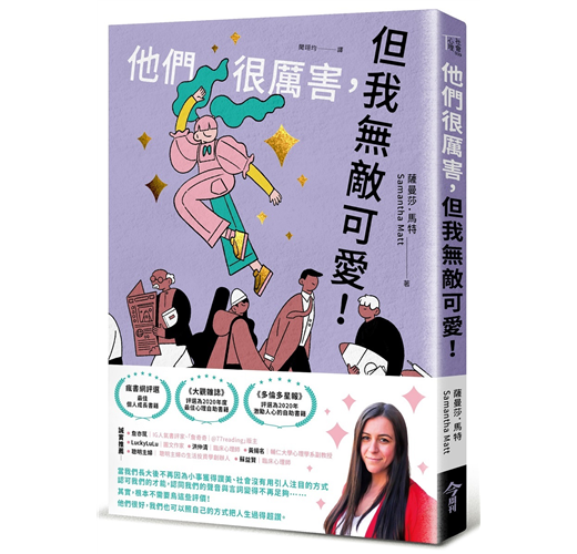 《他們很厲害,但我無敵可愛!》是一本心理勵志書,作者薩曼莎.馬特以幽默、輕鬆的語調分享了自己在不同人生時期、不同層面的「平凡」人生故事,更藉由描述她一次次從低潮到轉念、奮起的過程中,讓讀者了解到「平凡不只不是錯,而且還真的很不錯」。
