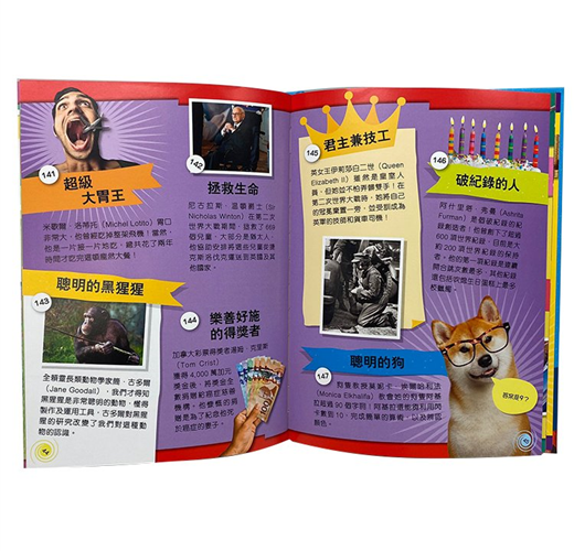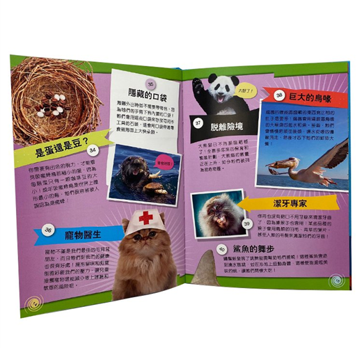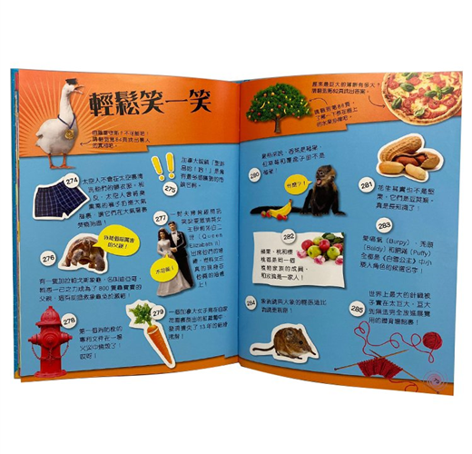全書分為8大主題,包括:動物、地理、了不起的人們、歷史、世界大小事、奇聞異事、環球趣聞,以及正向思維的妙處,讓孩子每天開心大發現!