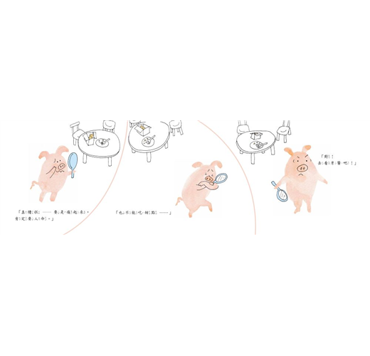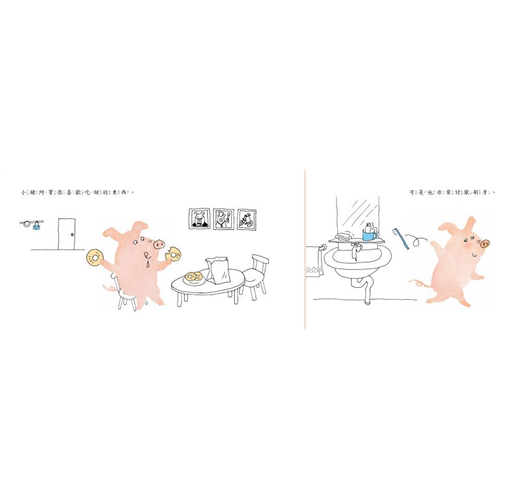 在《我愛牙齒,牙不痛!》裡,小豬在掙扎過後,決定乖乖去找牙醫治療,只是半路上,他竟然遇見大野狼!大野狼與小豬的體型形成強烈對比,當大野狼一步步逼近,即將要小豬好像即將被吃掉!