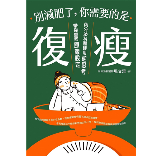 假如你已經試過無數種減肥菜單、流行飲食法,仍舊瘦不下來,或許你需要的是馬醫師的這本書。──蔡明劼 內分泌新陳代謝專科醫師