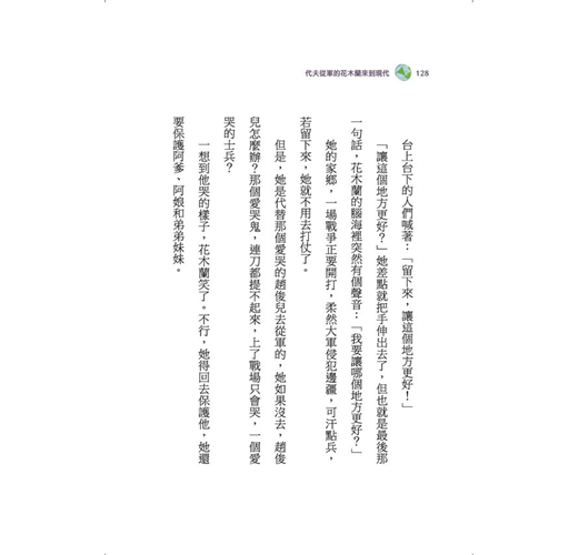 這回選中的是勇敢的花木蘭。因為阿爹收了趙家的錢,花木蘭就得嫁給愛哭鬼趙俊兒。為了逃婚,木蘭留書給阿爹說:趙俊兒膽小,不敢上戰場,我代「夫」從軍,替你抵那三兩半的黃金……