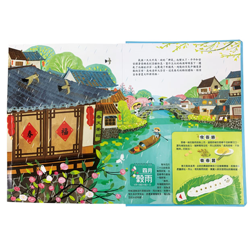 內容包含每個節氣的農耕活動、民俗節慶、時令飲食、傳說故事與詩詞諺語,淺顯易懂的文字敘述,簡單好玩,讓節氣更靠近孩子的世界。