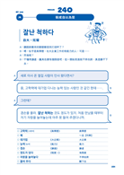 一般慣用語小辭典只用解釋搭配造句,但光看造句還是不太會使用。本書設計迷你情境對話,帶大家認識「原來這些慣用表達的使用時機是多麽的日常啊!」除了認識使用時機,會話本身也包含許多常見句型、詞組的應用,比如「講好話的時候你不聽(,逼我~)」、「不擇手段」、「講話太過分」、「沒品」、「看好我(稱讚)」等說法,以及韓國人在特定情境下,喜歡用的強調情緒的語尾,在書裡的會話都找得出來喔!