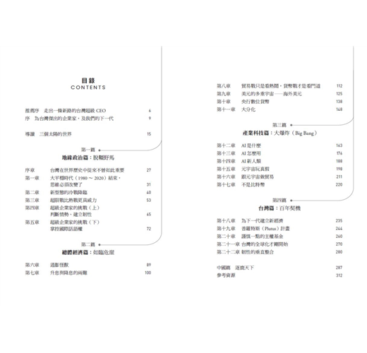 從台灣現勢、台灣角度、台灣利益出發,提出因應新局的可行方向,值得所有CEO、領導者、關心台灣未來的讀者思考。