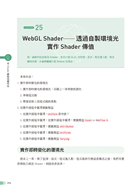 本書分為三部曲,第一部曲介紹多種底層關係,第二部曲提供多個 three.js 案例的教學同時引出原理,第三部曲深入 Shader 的世界。每一部都能單獨看,每一個案例都有上手的程式碼以及完成的程式碼,學網頁 3D 再也不必茫然!