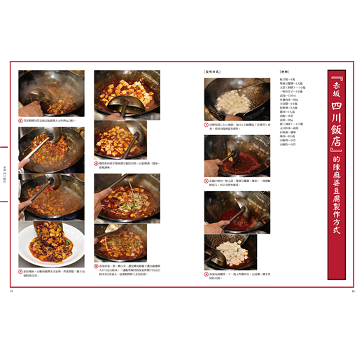 包含食材的選擇、事前處理、實際烹調等過程的技巧在內,針對該品項進行詳盡的步驟解析與調理演示。除此之外,也會針對肉燥、豆瓣醬、辛香料等配料的選取、調配、製作加以說明。