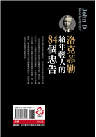 《洛克菲勒給年輕人的八十四個忠告》正是從洛克菲勒的思想精華,他在書中將事業成功、富可敵國的秘訣娓娓道來。洛克菲勒簡單的話語裡蘊藏著豐富的人生哲理和無盡的財富,不僅使洛克菲勒家族的後人受益,同時也指引了很多處於迷茫中的人。