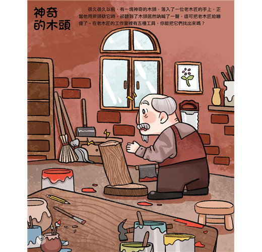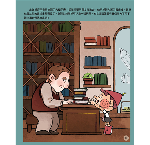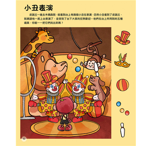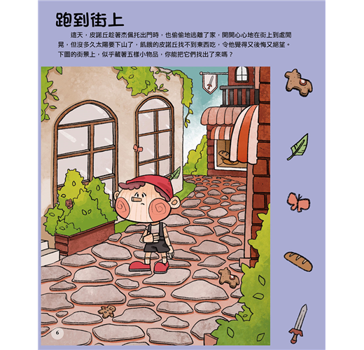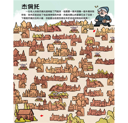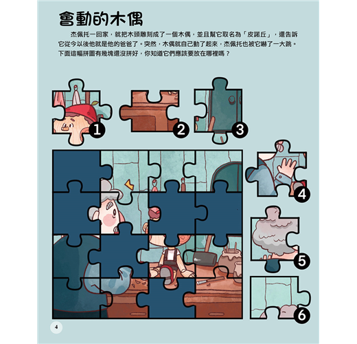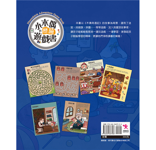 本書以《木偶奇遇記》的故事為背景,運用了迷宮、找錯誤、拼圖……等等遊戲,加入到童話故事裡,讓孩子能輕輕鬆鬆地一邊玩遊戲,一邊學習,激發起孩子動腦學習的精神,更讓他們領悟讀書的樂趣!