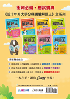 分科測驗取代了原來的指考,由原本的十科縮減成七科,目的在檢視同學是否具有大學校系所要求的學科的深廣能力。且在採計科目上,各校系會從學測、分科測驗、術科考試中取3至5科作為採計科目,分科測驗至少採計1科,想依循「考試分發」進入理想大學的話,分科測驗的準備必然不能鬆懈。有鑑於此,本系列收錄近10年歷屆試題,除了鑑往知來,還提供同學最充分的演練題庫,相信在經過10年份的歷屆試題洗禮下,自身實力能更上一層。