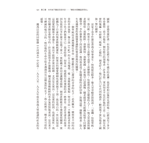 ……揭露中共如何吸收地下黨員,以及揭示出中共如何運用所謂的「統戰」策略來吸收地下黨員去進行顛覆自由社會的真相,也正是這本《回憶錄》最重要的一個貢獻。當然,慕嫻2012年出版的書(按:《我與香港地下黨》)已經分析了中共地下黨的組織和他們的行動目的,但是這本回憶錄的敘寫觸及的面向更多、也更廣。對中共吸收地下黨員的策略與過程,以及如何運用「統戰」來擴大並增強本身的組織也有更加完整的討論。因此,對從來沒有真正了解中共歷史、或是完全不知道中共本質的人來說,這本《回憶錄》提供的資訊就相當重要了。