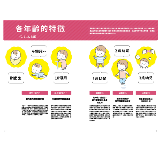 除此,在育兒路上,針對不同年齡層的孩子的教養問題,本書也給予許多客觀建議。