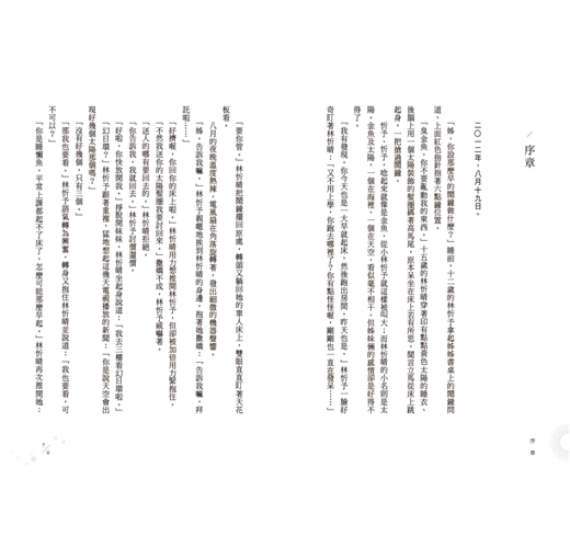 「姊,你設那麼早的鬧鐘做什麼?」睡前,十二歲的林忻予拿起姊姊書桌上的鬧鐘問道,上面紅色指針指著六點鐘位置。