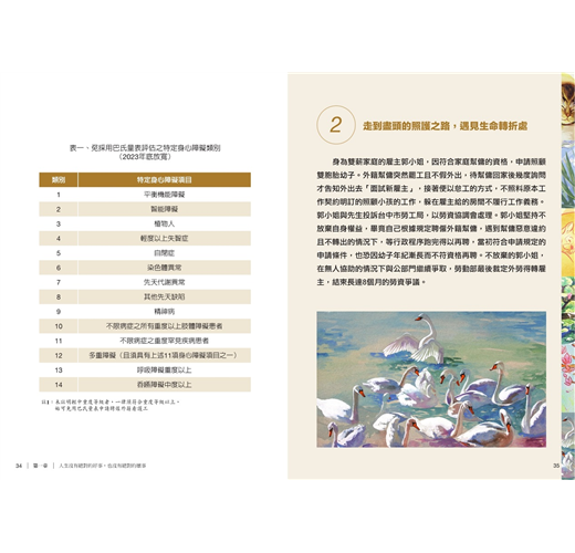 今欣見努力為重症、失能家庭寫文章論述、拜會各政黨的民意代表及黨團的雇主協會理事長張姮燕教授以及執行長童文薰律師,決定把她們照顧父母親的歷程透過《活出兩倍的人生》一書,與大家分享,少走一些照護冤枉路。在閱讀張教授與童律師的文章後,感佩她倆在各自有著工作及照護責任外,還撥出時間做公益、著書立說。閱讀他們的照護故事,細膩的文筆,感受到照護的點滴與送別親人時的無奈;不同章節分別針對聘僱外籍看護、使用長照資源、制度建議、法律觀點進行鋪陳,兼具實務及知識性。這是本市面上難得一見的書籍,全書看得到張教授及童律師對家人及眾人的愛,貫穿每一個故事與建議,尤其是針對法律的部分,比如遺囑、遺產的處理、不急救等法律問題給讀者想法,更是一本好看的「工具書」。