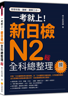 只要有《一考就上!新日檢N2全科總整理 新版》,一本就搞定!★本書囊括N2考試科目「言語知識(文字.語彙.文法).讀解」、「聽解」,是通過新日檢考試最完整的參考書!