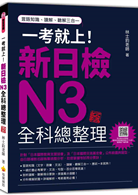 只要有《一考就上!新日檢N3全科總整理 新版》,一本就搞定!★本書三合一,囊括N3考試科目「言語知識(文字.語彙)」、「言語知識(文法).讀解」、「聽解」,是通過日檢考試最完整的參考書!