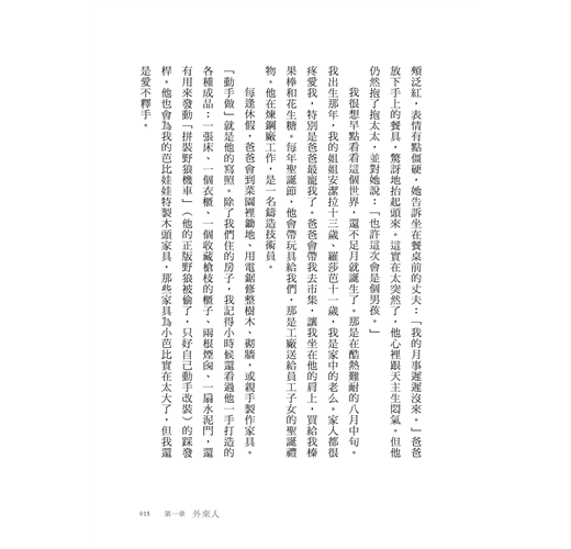 看似虛構的小說,承載的卻是活生生、有血有淚的真實故事。本書寫給有些迷惘不安、正在追尋幸福與人生意義的你。跟隨主角芭芭拉走過徬徨青春、浮沉情海、勇於抉擇的人生經歷,窺見教友家庭充滿酸甜苦辣的生活樣貌,在讓人好氣又好笑的日常互動中,得到「原來他們也是這樣」的溫暖共鳴。