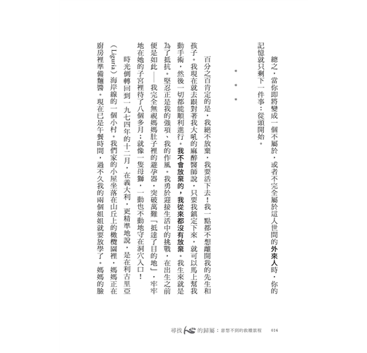 ◆ 揭開傳教家庭的面貌,故事情節引人入勝。跟著主角的喜怒哀樂又哭又笑,甚至為她鮮明倔強的個性捏一把冷汗。從精采有趣的人生故事中,反思自己與天主的關係,勇敢回應天主愛的召喚。