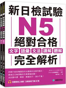 「新日檢試驗絕對合格」系列為日本知名的日語教材出版社「アスク出版」專門為日語學習者所設計的完整日檢模擬試題題庫,全套系列從N1至N5共五冊,每冊皆會附上3回的模擬試題,而試題內容與實際的日檢測驗相同,分為「文字・語彙」、「文法」、「讀解」、「聽解」四大類型,實際寫過一遍,在實際上場考試時一定也能夠氣定神閒的發揮實力。