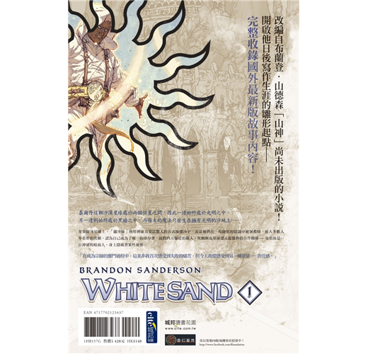 相關著作:《白沙.卷1(邪惡奇幻天才布蘭登.山德森首部圖像小說全彩精緻完整版!)》《白沙.卷2(邪惡奇幻天才布蘭登.山德森首部圖像小說全彩精緻完整版!)》《白沙.卷3【完結篇】(邪惡奇幻天才布蘭登.山德森首部圖像小說全彩精緻完整版!)》《白沙.卷3【完結篇】(限量隨書附贈「山德森之年寰宇藏書票.御沙而行」,邪惡奇幻天才布蘭登.山德森首部圖像小說全彩精緻完整版!)》《白沙.卷2(限量隨書附贈「山德森之年寰宇藏書票.御沙而行」,邪惡奇幻天才布蘭登.山德森首部圖像小說全彩精緻完整版!)》《迷霧之子系列-執法鎔金:謎金(完結篇)》《迷霧之子-執法鎔金:謎金(完結篇)(限量作者親筆簽名版)》《晨碎(限量贈品,典藏燙金精裝版,颶光典籍系列外傳)》《晨碎(颶光典籍系列外傳,限量典藏燙金精裝版)》《天防者III:超感者》《颶光典籍四部曲:戰爭節奏.上冊》《颶光典籍四部曲:戰爭節奏.下冊》《無名之子》《無垠祕典(典藏精裝版)》《無垠祕典(作者親簽限量典藏精裝版)》《天防者II:星界》《迷霧之子二部曲:昇華之井(十周年紀念典藏限量精裝版)》《迷霧之子終部曲:永世英雄(十周年紀念典藏限量精裝版)》《迷霧之子首部曲:最後帝國(十周年紀念典藏限量精裝版)》《颶光典籍三部曲:引誓之劍.下冊》《颶光典籍三部曲:引誓之劍.上冊》《天防者》《迷霧之子系列-執法鎔金:悼環》《迷霧之子-執法鎔金:自影》《迷霧之子-執法鎔金:自影(首刷限量金屬之子特別版)》《軍團:布蘭登.山德森精選集II(限量作者簽名燙銀版)》《審判者傳奇3:禍星(完結篇)》《諸神之城:伊嵐翠(十周年紀念全新修訂版)》《諸神之城:伊嵐翠(十周年紀念典藏限量精裝版)》《颶光典籍二部曲:燦軍箴言.上冊》《颶光典籍二部曲:燦軍箴言.下冊》《審判者傳奇2:熾焰》《無盡之劍》《無盡之劍(限量精裝紀念版)(拆封不退)》《時光之輪14最終部:光明回憶(下)》《審判者傳奇:鋼鐵心》《陣學師:亞米帝斯學院》《時光之輪12末日風暴(上)》《時光之輪12末日風暴(下)》《皇帝魂:布蘭登.山德森精選集》《颶光典籍首部曲:王者之路.下冊》《颶光典籍首部曲:王者之路.上冊》《迷霧之子番外篇:執法鎔金》《迷霧之子終部曲:永世英雄》《諸神之城:伊嵐翠(全新封面)》
