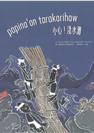 繪本《小心!淺水灘》以靜浦部落利用秀姑巒溪運送部落建築材料的過程。部落的婦女一早就準備好一天的餐食,讓上山採集材料的男性吃飽早餐帶著午餐出發,而山上材料如何運送下山到部落,則需憑著勇氣和智慧,利用溪流運輸,避開激流漩渦,記得出門時阿公的叮嚀,一起出門要一起平安回家,為一件事動員整個部落,意味著互相照護與互相幫忙的集體力量。
